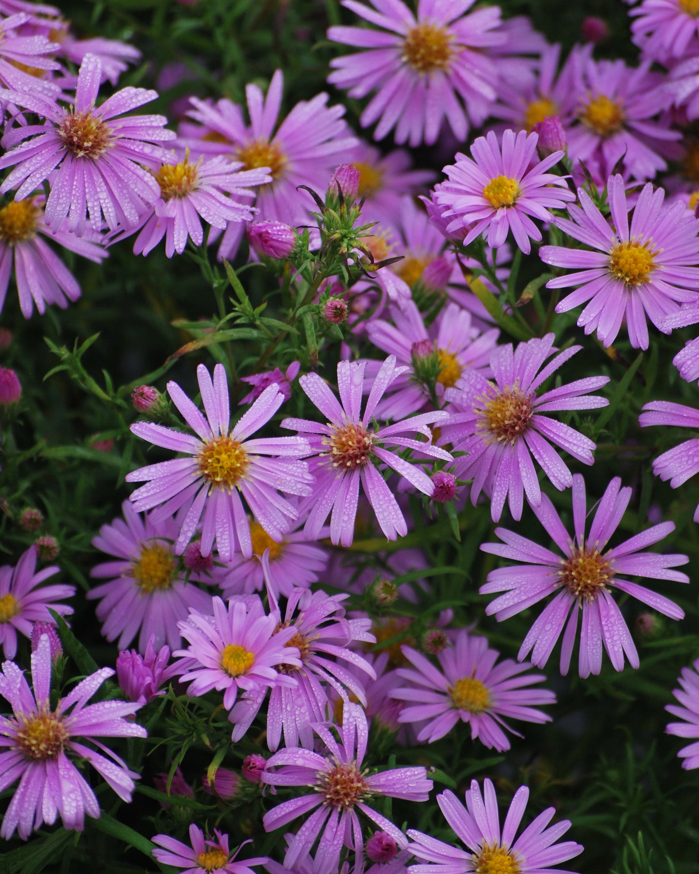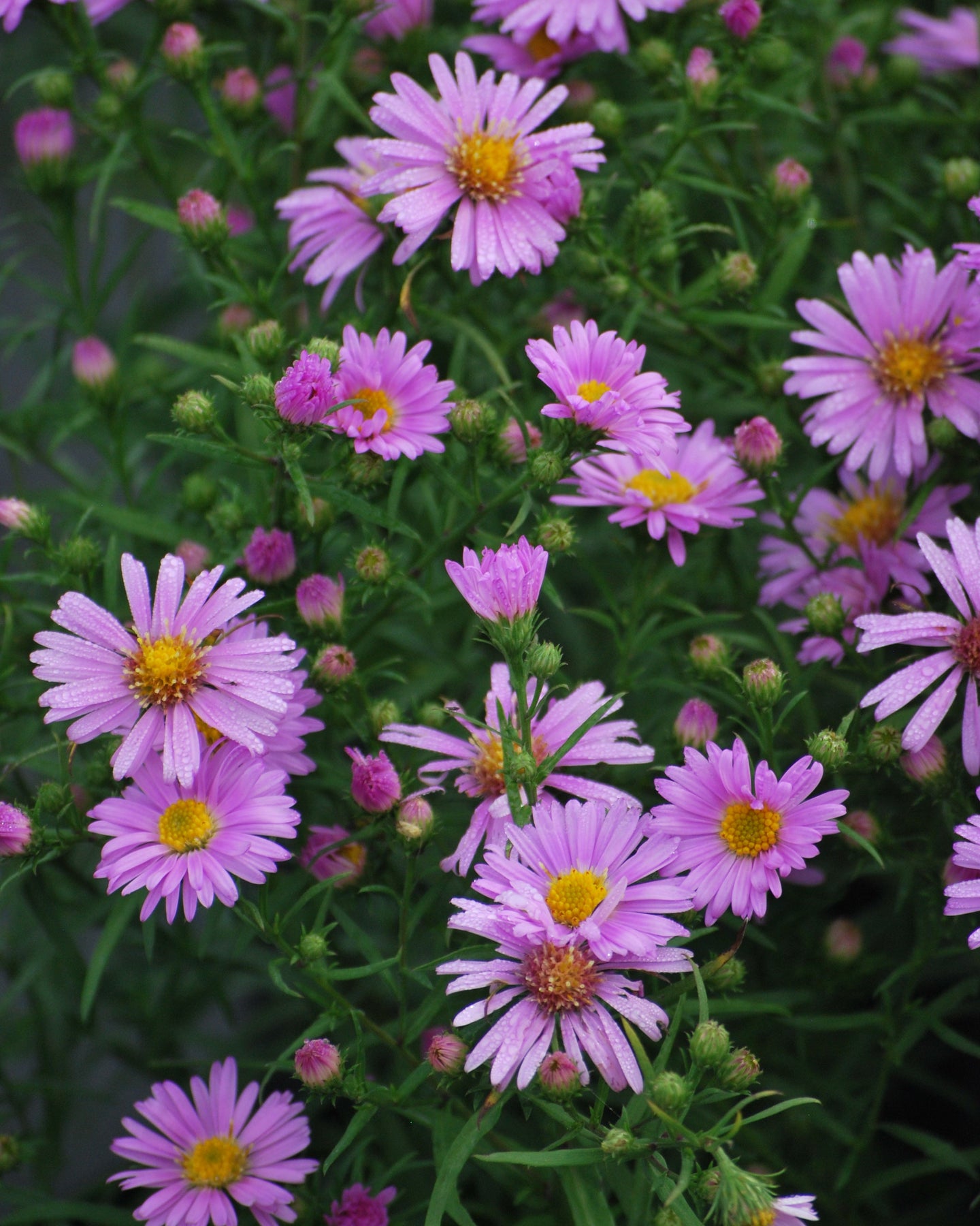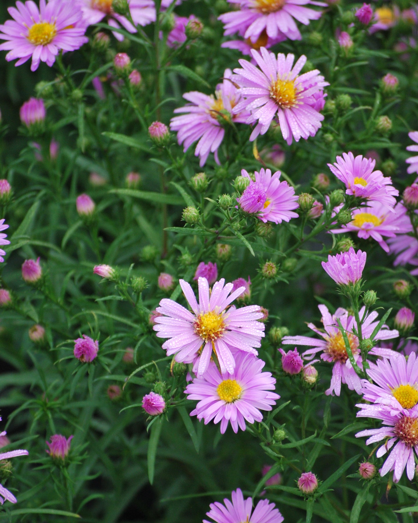 The native Wood Aster provides shade gardeners with delightful fall color in this case, clear pink daisy flowers in September and October, above shiny dark green leaves. 'Wood's Pink' has a compact habit, is mildew and rust resistant, and stands just 12-16" in height.