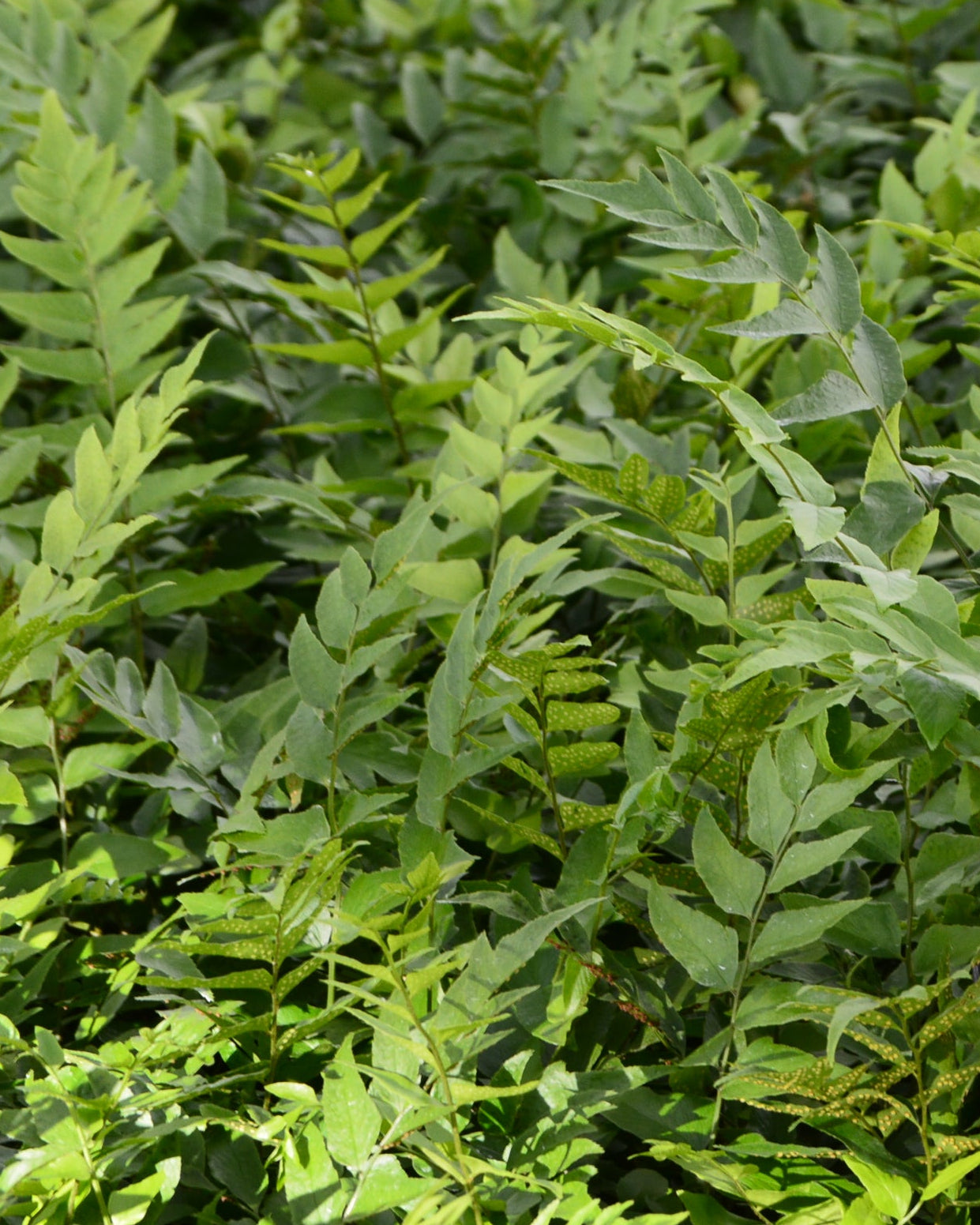 Holly branch-like fronds are stiff and upright to 2' providing vertical structure and evergreen foliage for the woodland garden. Dullish green new fronds age to contrasting dark green. Prefers moist, humus-rich soil in partial to full shade.