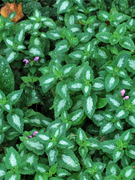 Shiny foliage at 8-10" with leaves of silver edged with green brighten up the shady garden. 'Red Nancy' sports very rosy pink flowers from April to July that contrast nicely with the shiny foliage. Lamium thrives in dry shade sites and is adaptable to a wide range of light conditions. An excellent ground cover choice for planting under shade trees or and to fill in large areas quickly.