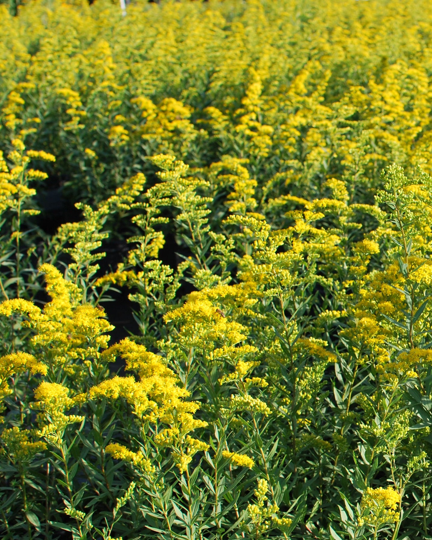 'Solar Cascade' will put on a stellar performance from late summer into fall with showers of golden-yellow flowers. This goldenrod was selected from a federally endangered species found only in remote areas of Kentucky and Indiana. Height is mid-way between 'Fireworks' and 'Golden Fleece' at 24-30". Drought tolerant once established.