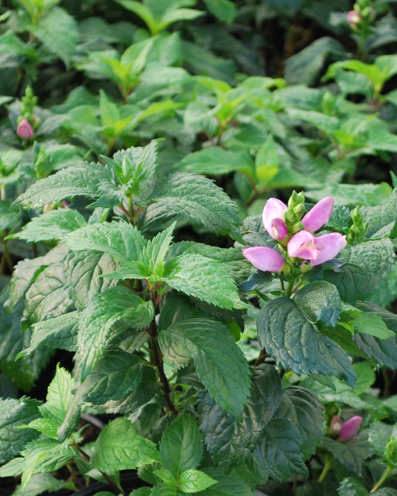 A hardy native plant that inhabits boggy areas or the banks of streams, they prefer some shade and deep, moist soil, thus making great woodland plantings. The Pink Turtlehead has rosy-pink snapdragon-like flowers in August and September 2-3' high that form sizable clumps with glossy leaves.
