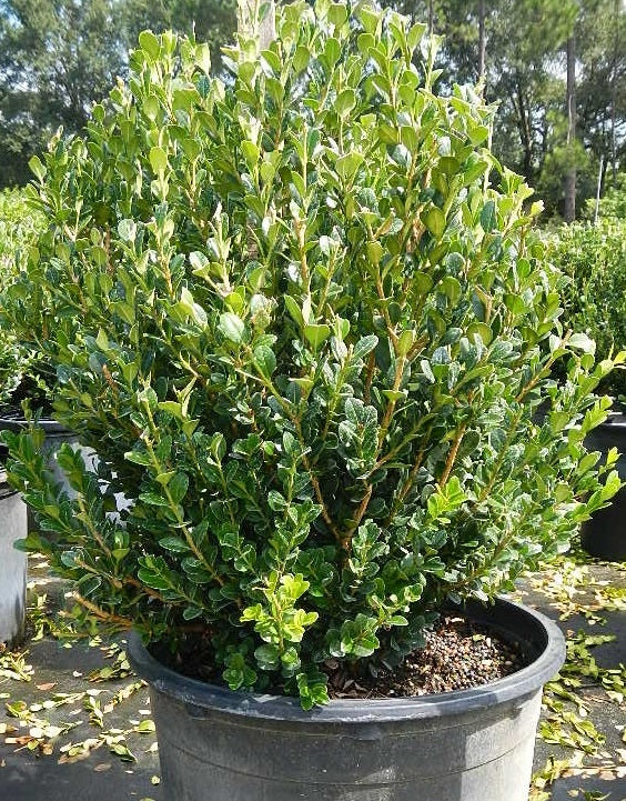 Korean littleleaf boxwood is compact and mounded with an open habit. Grows 5' tall over several years if not pruned.