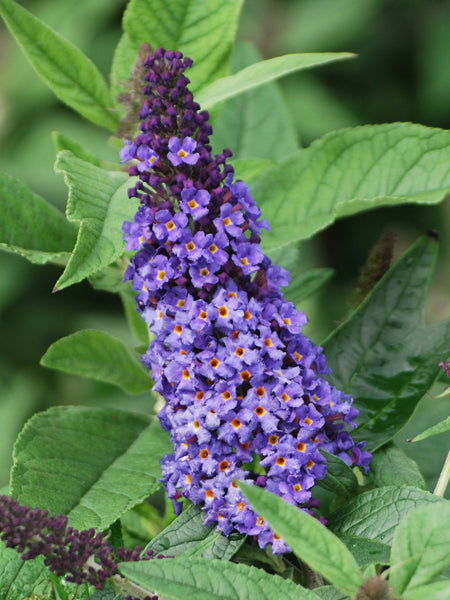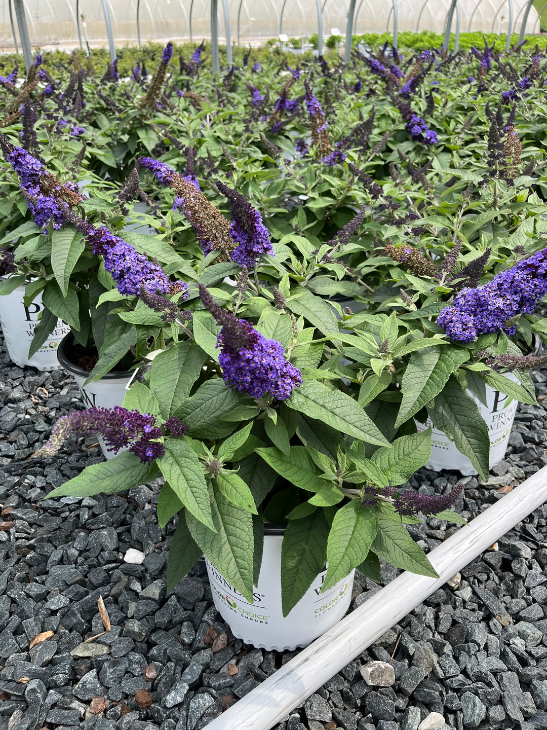 Non-stop full-sized fragrant flowers bloom from summer to frost on compact 2' tall and wide plants. We are offering four of the color-packed Pugster® Buddleia. Midnight-blue buds open to violet-blue flowers. Compact foliage has sturdy stems that experience less winter dieback and breakage. Plant in small garden spaces or use as a low hedge. Buddleias are salt tolerant and resistant to deer browsing. Performs best in average moisture and well-drained soil. Plant 24" apart. PP#28794