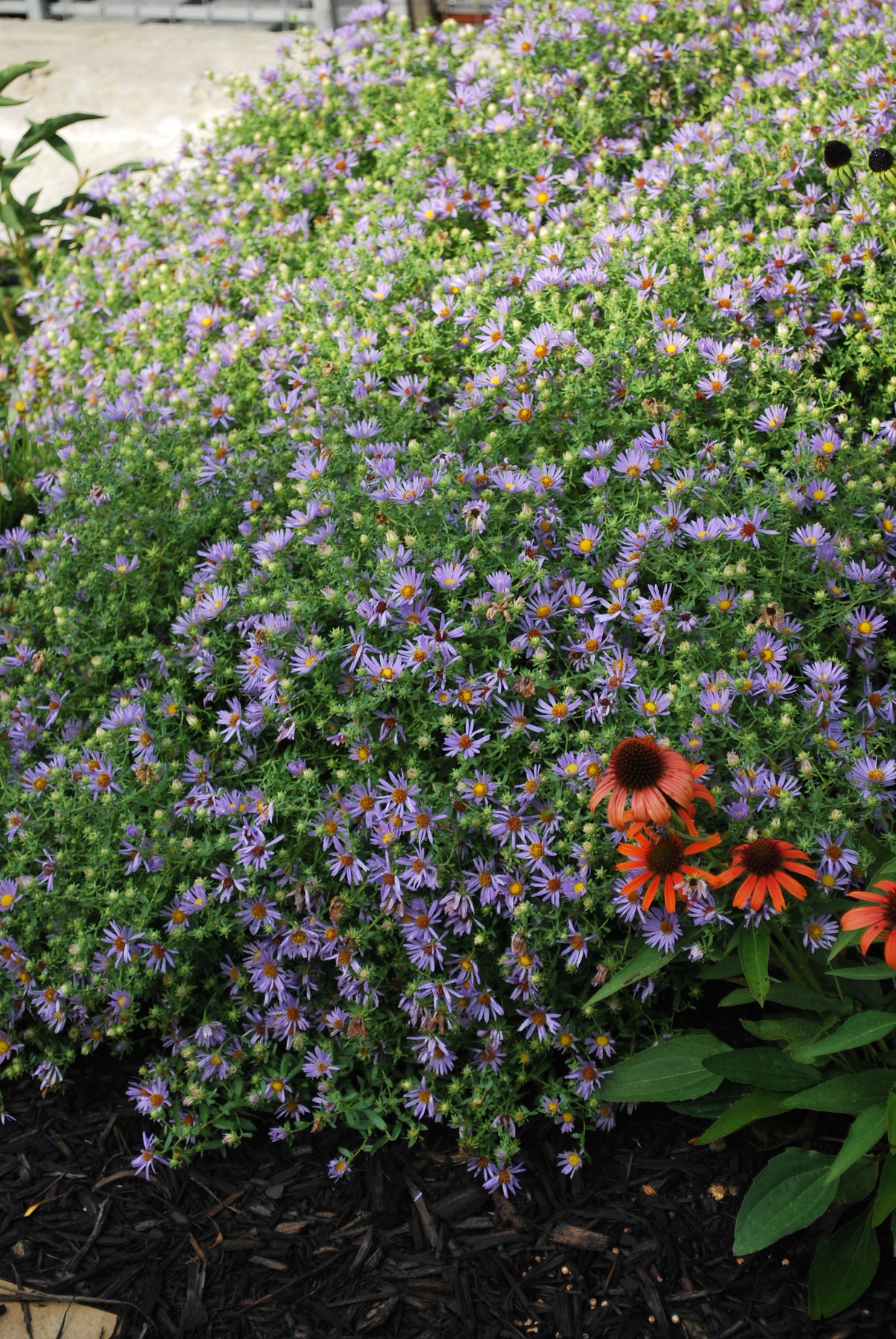 A widely popular aster in the mid-Atlantic, and rightly so. Mounded, bushy foliage is attractive all summer and is covered with lavender-blue flowers in fall, attracting pollinators later in the season. Use in native plant gardens, mixed borders, containers or in mass plantings. This Aster grows 18-30" tall and up to 4' wide. Tolerant of poor, dry soils. Note: the leaves are fragrant when crushed. Plant 36" apart.