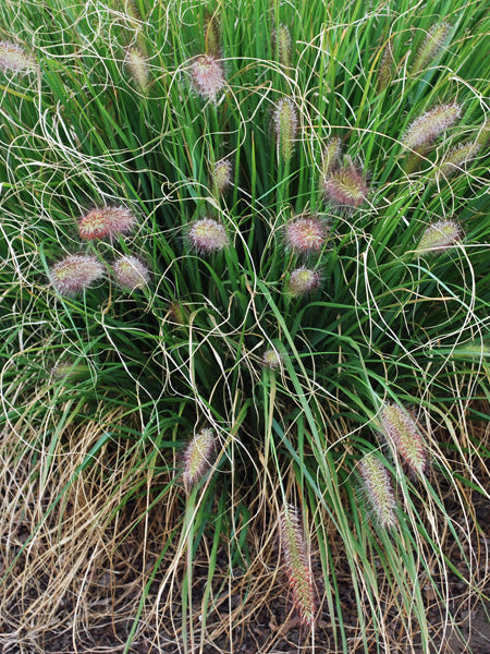 This is a compact, strong-growing 2-3' Fountain Grass, the green leaves of which are tinged with red in the fall. Blooming from August to October, its dark brown inflorescence gradually fades to beige. Try with tall summer Phlox and Aster 'October Skies'. Plant 24-30" apart.