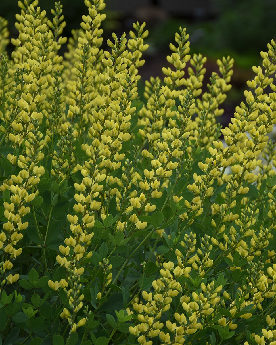 The beautiful selections of showy native Baptisia hybrids are gaining popularity in the garden and landscape. This extremely floriferous and long blooming variety has vivid yellow blooms that are on display for weeks in late spring to early summer. Use as a specimen in the garden and allow room to grow up to 5' wide. Grows 3-3.5' tall. PP#30478. Plant 48" apart.