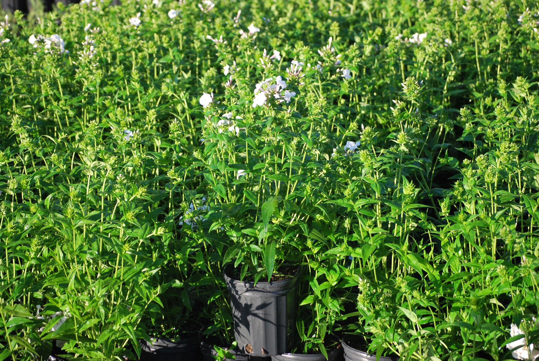 Conical clusters of white flowers with light purple eyes top the upright foliage in June and July. This summer Phlox hybrid has a mounding habit and grows 36" tall. The narrow leaved foliage has very good resistance to powdery mildew and will be an excellent addition to the sunny border or meadow. Try with Liatris 'Kobold' and Monarda 'Raspberry Wine'. PP#27267