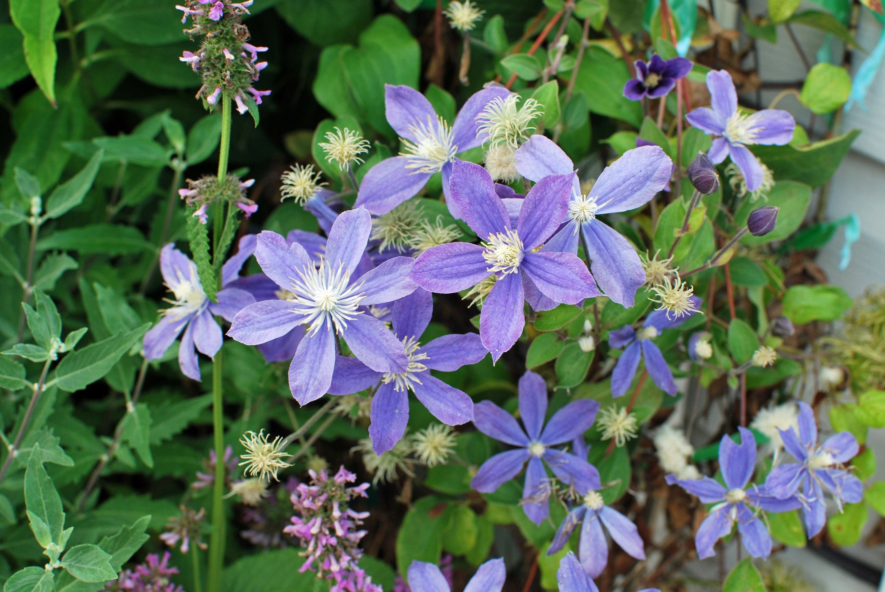 A lovely non-vining Clematis, 'Arabella' has single, violet-blue flowers that fade to light blue. The foliage can be left to ramble through the garden or tied to a trellis where the 2-3" flowers will be present from summer into fall. Overall height will be 4-6'.