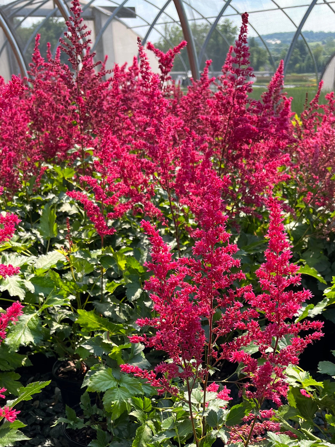 We welcome another great performer of the Music™ Series! Heavy Metal® will intensify the shade border scene with large cherry-red plumes in June-July. Height with flowers is 28”. This series boasts increased flower production and more sun and heat tolerance than other Astilbe arendsii hybrids. Plant 18" apart. PP#31438.