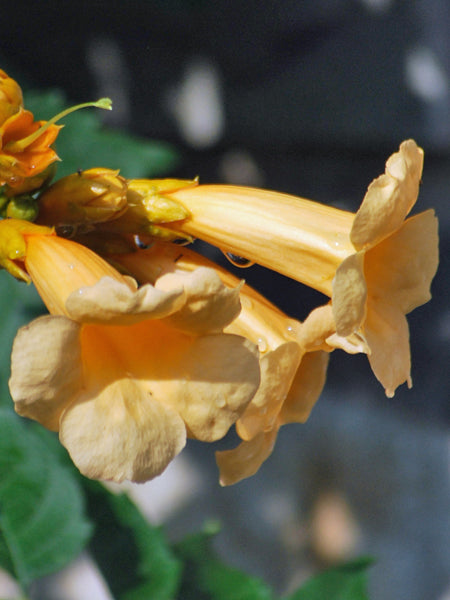 While definitely bright yellow in color, hummingbirds find the clusters of long-blooming, yellow trumpets as irresistible as redder flowers. The rich, green foliage turns golden-yellow in autumn when blooms finally slow down. Ordinary soil, as opposed to richly amended garden soil, is much preferred by Trumpet Vines to provide summer-long blooms. An application of bonemeal to the soil in the spring will also encourage abundant flowering. Grows 25-35'. Plant 5' apart.