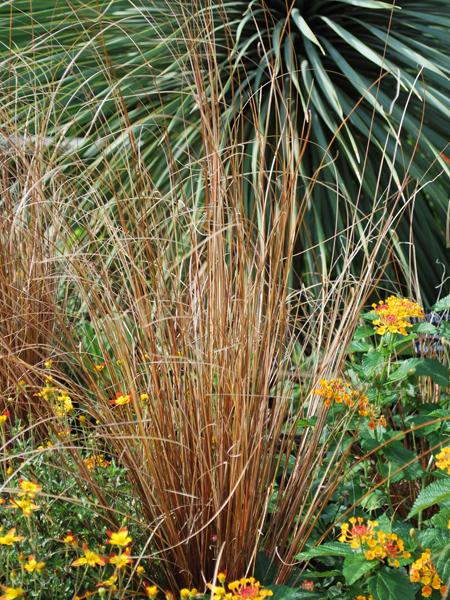 Reddish-bronze, with emphasis on bronze, upright foliage offers a unique texture/color combination to the mixed border. Surround with the green foliage and bright yellow and red blooms of Coreopsis, Gaillardia, and Helenium. This sedge prefers full sun and well-drained soil. Grows 24" tall. Plant 18" apart.
