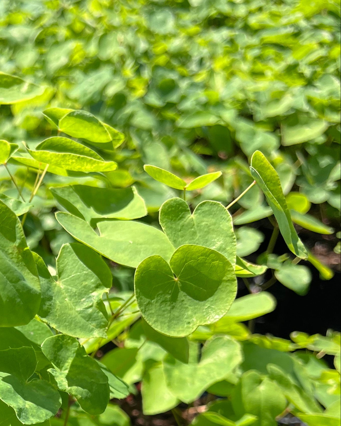 Same great performance in dryish shade as E. rubrum, but sports masses of small deep yellow star-shaped flowers in April. Cut old foliage to the ground in spring so that flowers will be visible. At 12" in height, the heart-shaped leaves on wiry stems are bronze when young, and then mature to green. Massed in the foreground of a shady bed or as edging, this drought tolerant perennial can't be beat.