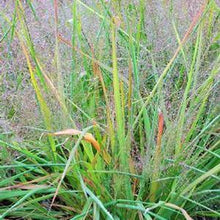 This North American native grows low to the ground in dense green tufts, 12-18" in height. The large inflorescence is attractive, forming a purple haze above the foliage when seen from a distance in late summer/early fall. Eventually, the inflorescence breaks off and floats around like tumbleweed.