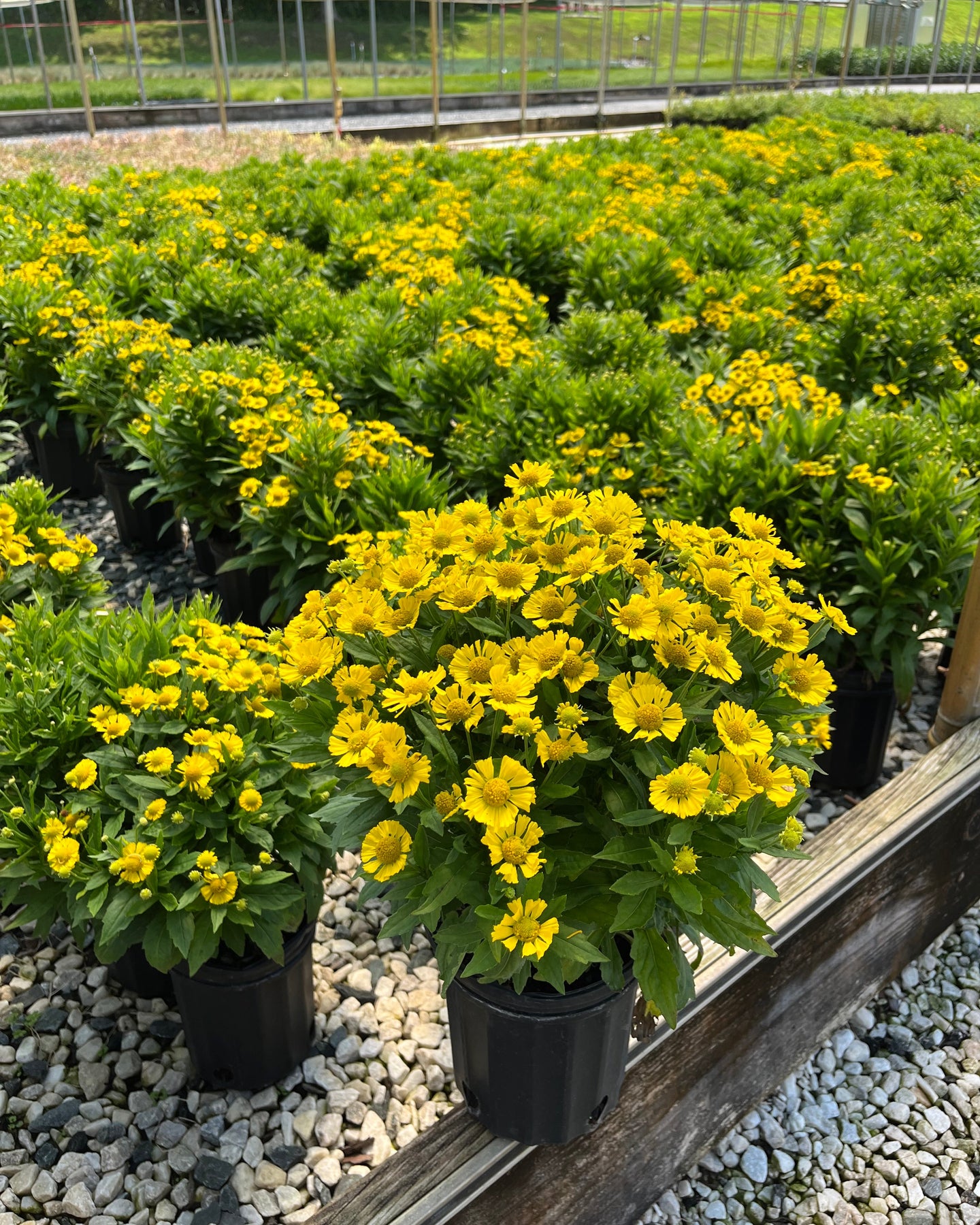 A bright yellow partner to 'Fuego' and 'Salsa' with the same terrific branching habit that means loads of blooms covering dark green foliage in mid-summer to fall. Lemon yellow petals surround a prominent yellow cone. Compact, well-branched foliage grows 18-20" tall. Trim in early June to promote branching and a larger display of blooms. Prefers average, well-drained soil. Great cut flower! PP#25968