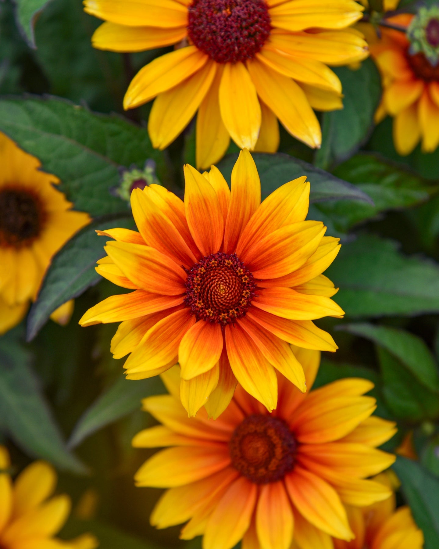 At 48-54” tall, place ‘Sundial’ in the middle to back of the garden border and invite bees and butterflies to “come on in!”  In mid to late summer, the profuse flowers are golden yellow with a bold red center infused from the petals to the cone. Heliopsis is at home in the meadow or sunny border, and is heat and drought tolerant.  Plant 30" apart. PPAF.
