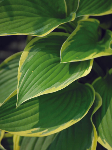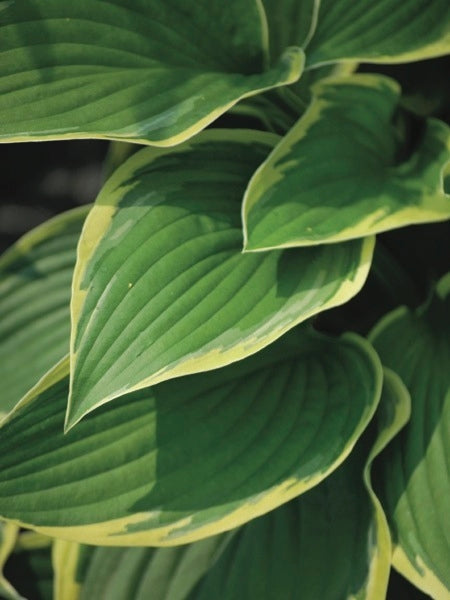Dark green leaves have a stunning golden-yellow border on this slug-resistant variety. Lilac flowers appear above the foliage in July. Height is 28". Try it with the fall-blooming Anemone 'Honorine Jobert' and blue-flowering Aconitum for pleasing eye appeal.
