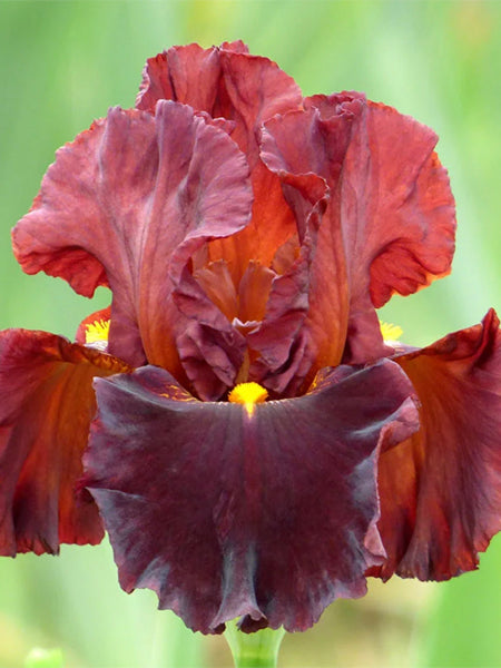 Stunning bronze-red standards and burgundy-red falls will be eye candy in the sunny border. Blooms appear in spring on 36" tall stems, surrounded by sword-shaped leaves. Plant 24" apart.