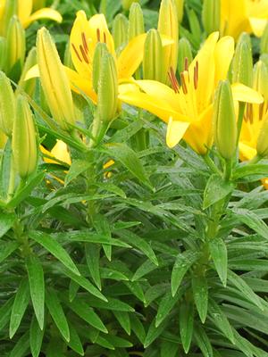 Bursting with color in early to mid-summer, these compact lilies are offered in many bold and beautiful colors with very high bud counts and are perfect for the front of the border, rock garden and containers or as a cut flower. 'Tiny Bee' blooms bright yellow with black spots near the center of the flower. Grows 12-14" tall and has 5-7 buds per stem. PP#16255