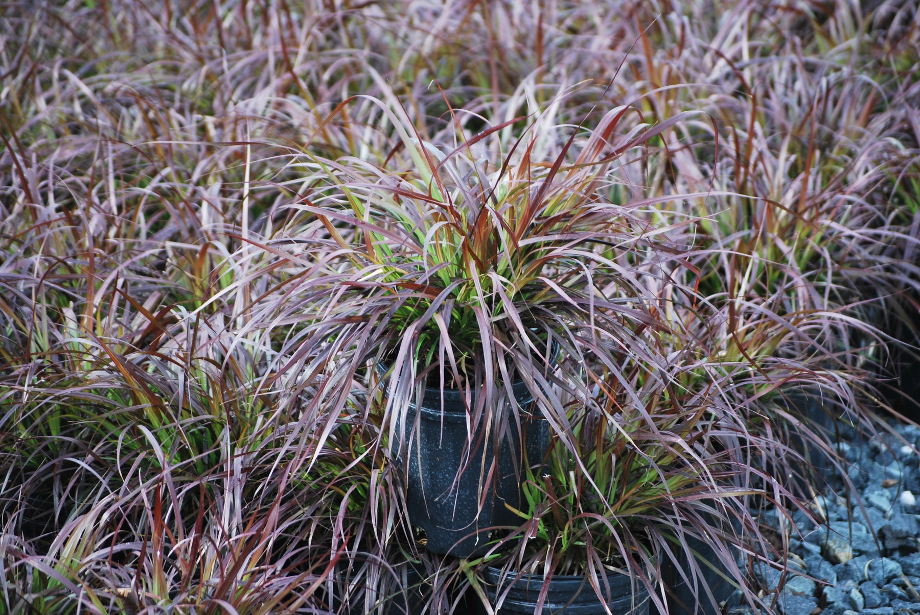 Striking maroon leaves keep their color all summer, and the 6-8" long maroon seed heads are lovely from June until frost on this 4' Fountain Grass. This is a perennial that is not hardy through our winter. Simply treat it as an annual and you won't be disappointed.