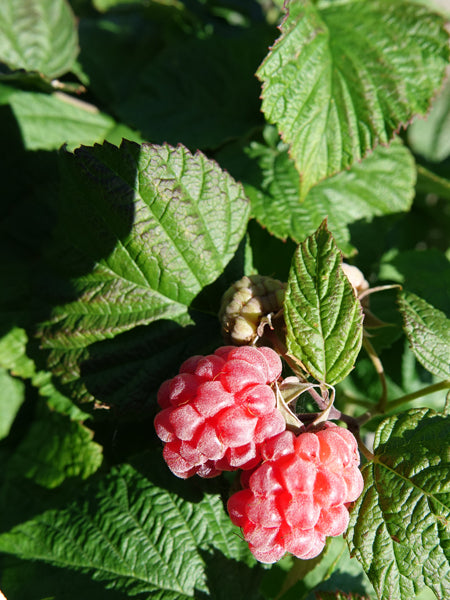 A long-time favorite, you'll be picking baskets of luscious, plump heart shaped raspberries from this ever-bearing variety. A moderate crop will arrive midsummer followed by an abundant fall harvest lasting from August until frost. Clusters of white, rose-like flowers give way to sweet, juicy red fruits on 4-5' sturdy canes that do not need staking. You only need one to produce fruit with this self-pollinating variety, but you may want more for eating fresh, making jam or freezing. Deciduous. Plant 24-36" apart.