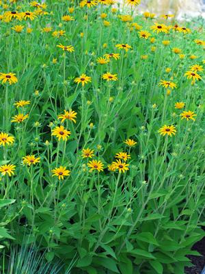 A Southeast U.S native that some in that region are quite proud of, and with good reason!à In July, masses of 3Ãâ¬â stems are topped with not-so-typical black-eyed Susan flowers that are quite large at 3Ãâ¬Â across and very vibrant yellow. à Blooms continue into late summer and are a welcome addition to a meadow planting or more formal setting.