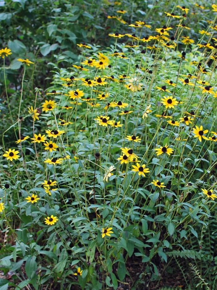 Fast growing with shiny, more elongated lobed leaves than 'Goldsturm', this native has orange-yellow ray petals with a brown center. It blooms from late July into October, (a good six weeks longer than 'Goldsturm'), and grows 24-30" tall. Although not invasive, colonies form quickly in rich loose soil. Butterflies enjoy this Rudbeckia as well.