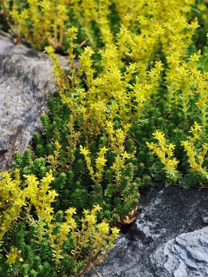 Durable, vigorous and perfect for the rock garden, this quick spreading groundcover has six spiral rows of small cylindrical bright green leaves and grows 4-6Ãâ¬Â tall. à Often used in green roofs plantings. Bright yellow flowers appear in summer and contrast well with rocks or pathways