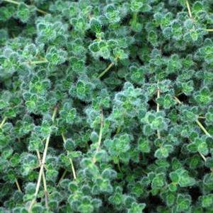 You could knit a sweater out of this stuff! Tiny felted gray leaves form a low cushy mat to a height of 2-3" with occasional tiny pink flowers in summer. A drought tolerant evergreen ground cover, Thyme is perfect as a low maintenance lawn substitute, in the rock garden, or planted between stepping stones. Provide full sun and well drained soil, avoiding wet feet at all times.